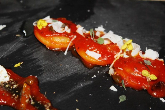 La cucina è volutamente semplice, buona, gusti puliti, preparazioni moderne. La cena è piacevole i piatti giocati su buoni contrasti. Nota di merito per il tortello di pasta cotta ripieno di cipollotto nocerino passito con San Marzano e ricotta salata, racchiude i prodotti simbolo di questo Territorio, la tendenza dolce della pasta cotta, l’agro dolce del cipollotto, la mineralità del San Marzano e la spinta sapida della ricotta il risultato d’insieme da l’idea di un buono pensato. Altra nota di merito per Il cannolo con formaggi morbidi, un dolce non dolce reso intrigante da una punta di acidità data dalla spuma di aglianico.