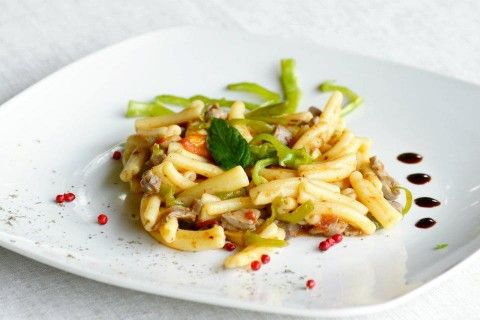 Nella degustazione dei primi, non poteva mancare il piatto caratteristico di questa famiglia di ristoratori: ‘O Scarpariello del Principe 1968. E, per rispettare la contaminazione terra-mare, c’è anche il tripudio dei sapori dei “Fusilli artigianali con tonnacchia, friarielli e origano”.