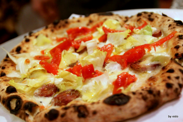 Così pure ti colpisce Anema & Core con mozzarella di bufala, sausiccione piccante, cuore di scarola cruda e filetti di pomodorino del piennolo del Vesuvio Dop.