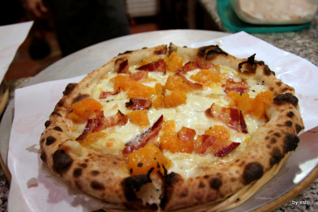 Il gioco stagionale si realizza con la Pizza provola e cocozza napoletana, dove il piccantino è abilmente mitigato dal dolce della zucca.