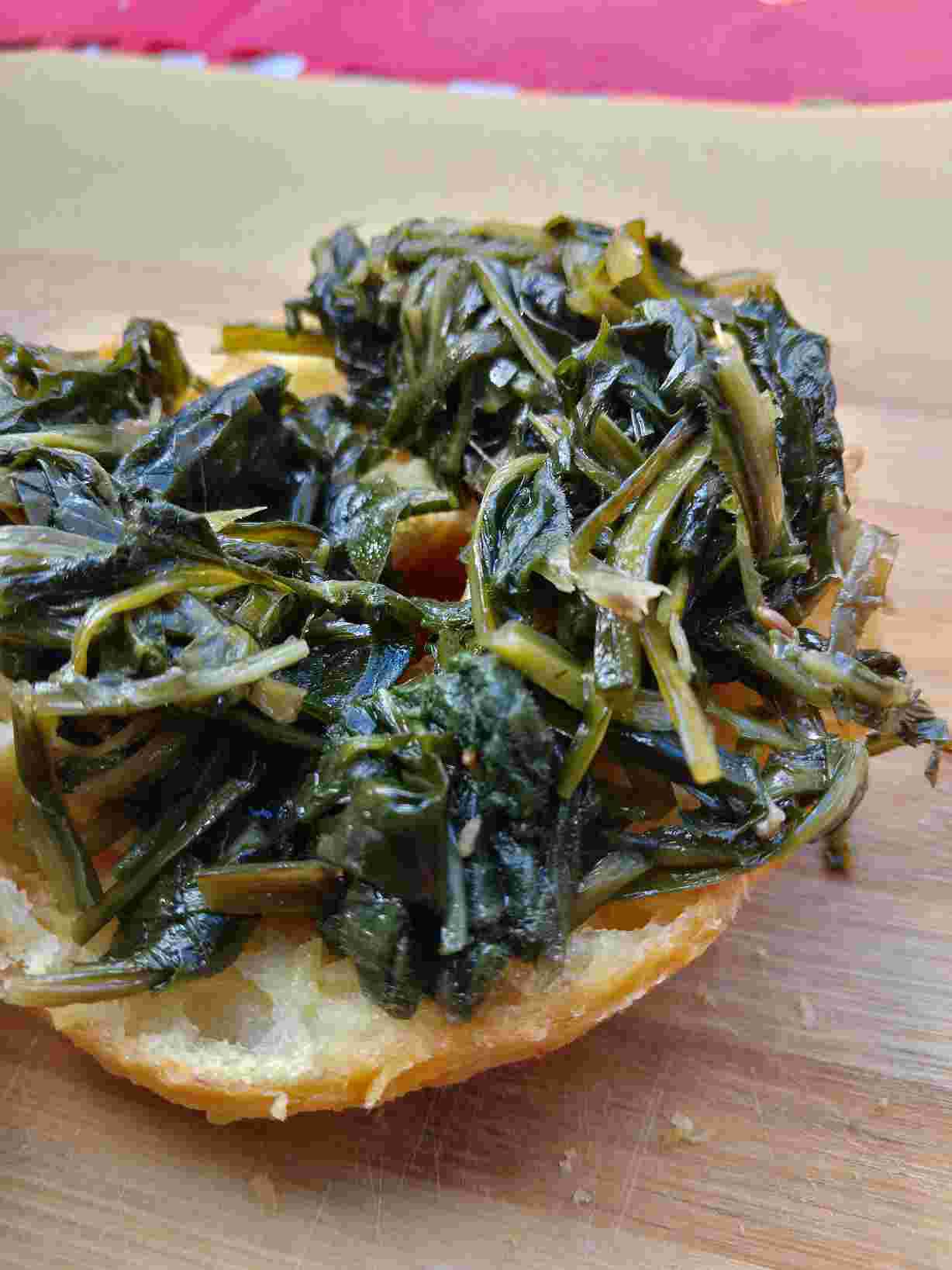 Nel frattempo, lessare le erbe spontanee in acqua salata. Scolarle e, una volta tiepide, strizzarle molto bene per far uscire tutta l’acqua di cottura.
