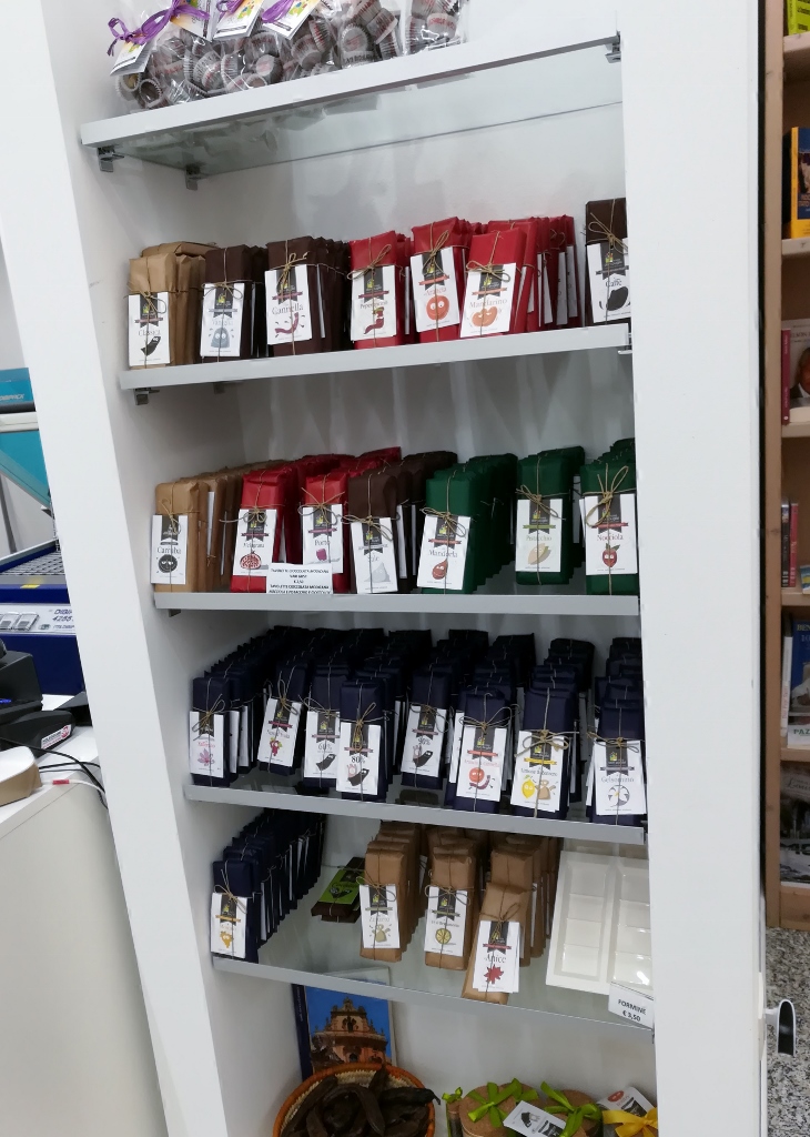 Una volta deliziata la vista pensiamo a deliziare il palato, così scendiamo dalla collina, parcheggiamo e facciamo qualcuna delle nostre “interviste per strada” per scoprire i locali più interessanti in tema di tradizioni locali. Incontriamo una persona garbatissima (il Dott. ….., purtroppo non ricordiamo il nome) che capisce subito le nostre esigenze, così ci consiglia prima di andare al Laboratorio Dolciario Don Puglisi per assaggiare e acquistare uno dei migliori cioccolati tipici di Modica (un laboratorio nato da un progetto più ampio nell’ambito sociale, dove donne e bambini in difficoltà vengono ospitate e aiutate tramite l’offerta di lavori presso la Casa di Don Puglisi, intitolata al sacerdote ucciso nel 1993 dalla mafia per il suo impegno a sottrarre manovalanza a “cosa nostra” educando i giovani e i bambini secondo il vangelo ad essere uomini liberi che potessero crescere a “testa alta”!).