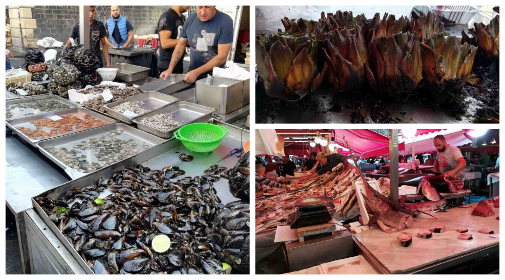 Una tappa irrinunciabile dove oltre a comprare il pesce si possono degustare crudi e fritti di mare (guardando sempre gli asterischi che stanno ad indicare i prodotti non di stagione e quindi surgelati!), le acciughe servite con la fettina di limone, le Sarde a Beccafico (uno dei piatti più popolari e tipici Siciliani), i carciofi arrostisti e tanto altro ancora volendosi accomodare presso uno dei ristoranti o locali di street food dislocati nei vicoletti.