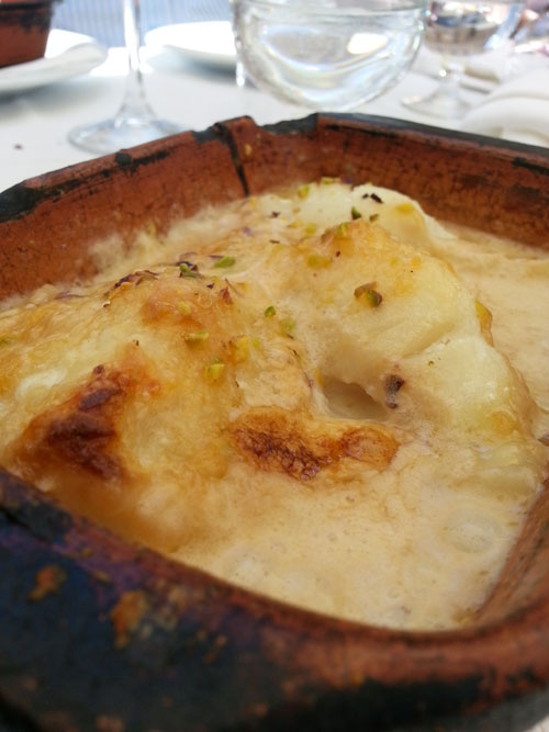 Tra i secondi da segnalare su tutto, benchè abbia trovato tutto davvero ottimo, gli straccetti di tonno con la cicoria e due piatti di baccalà eccellenti. Baccalà al forno con pistacchi e Baccalà con pomodoro e cipolle. Il primo molto somigliante a un baccalà alla vicentina ma con la granella di pistacchio che gli conferisce ulteriore gusto e croccantezza.