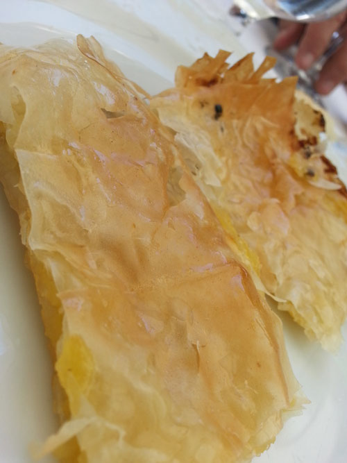 I dolci sono sostanzialmente quattro. Il primo, di manifattura del socio egiziano è il baklavà. Questo però si presenta non imbibito nello sciroppo di zucchero ed è farcito con crema pasticciera. Buono davvero.