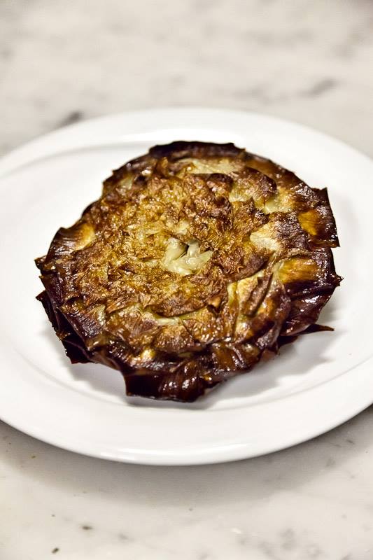 Qui non si inizia la comanda a chi accompagna in sala senza aver chiesto il carciofo alla giudia consistente in un carciofo mondato dalle foglie più dure e fritto in olio di semi a testa in giù avendo cura di sciacciarlo il più possibile riducendolo ad una pizzetta. Il risultato è un cuore morbido contornato da foglie fritte sino a divenire delle chips di carciofo.