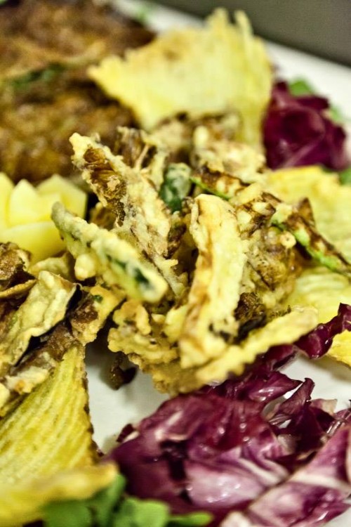 Un consiglio che vi do di cuore è di provare i “pezzetti vegetali fritti”, lo street food di una volta del Ghetto. Verdure varie pastellate e fritte.