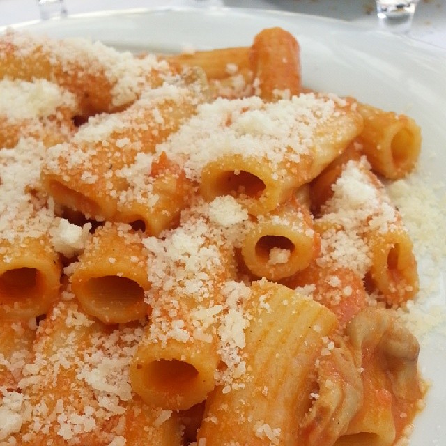 Io personalmente non ho resistito al richiamo dei Rigatoni con la pajata. Cosa sono? Beh per chi non li conosce potremmo definirli un piatto per coraggiosi. Rigatoni conditi con sugo nel quale è stato fatto cuocere l’intestino dell’agnellino lattante. Quest’ultima parte del quinto quarto, per sua conformazione e dimensione è impossibile da pulire. Ma essendo lattante va ricordato che il donatore aveva bevuto solo latte.