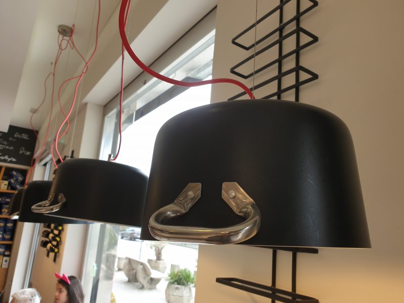 Si entra nella bakery e non è ben chiaro se ad essere stimolato maggiormente sia l’olfatto, inebriato da note calde e fragranti che sanno di grano e di campagna, di frutta secca e vaniglia, oppure la vista, catturata da scelte di design simpatiche e accattivanti: pentole per lampadari; parole chiave su parte delle pareti; forno a vista; scaffali con biscotti, taralli, freselle, colombe o panettoni – a seconda del periodo – autoprodotte e capaci di competere con le migliori in circolazione (e di cui abbiamo parlato qui); tavoli, apparecchiati con tovagliette, al contempo essenziali e chic.