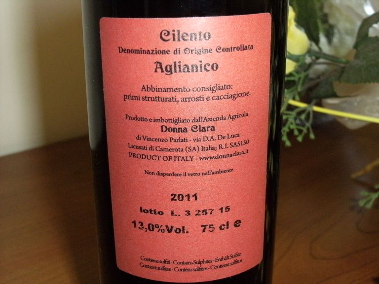 Per la mia consueta degustazione ho preferito come riferimento l’etichetta Notarius Cilento Aglianico Doc 2011, che ha trascorso circa venti mesi tra acciaio, barrique e vetro, prima di essere messa sul mercato. Tasso alcolometrico di tredici gradi.