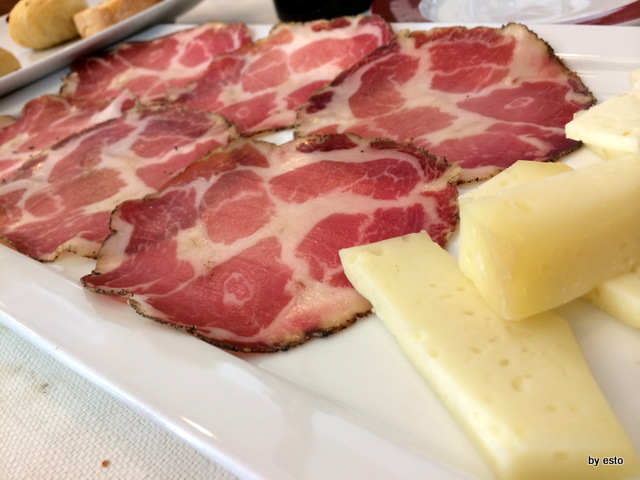 Qualche salume e un po’ di formaggio: capicollo di maiale nero e Casomuscio.