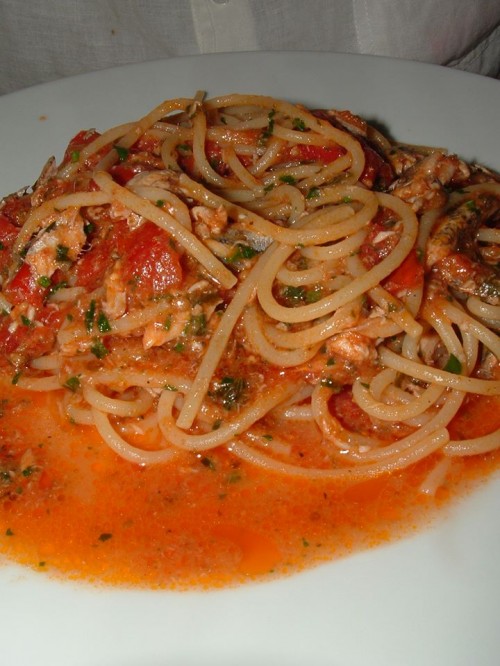 Spaghetti alla puttanesca di alici e colatura di Cetara