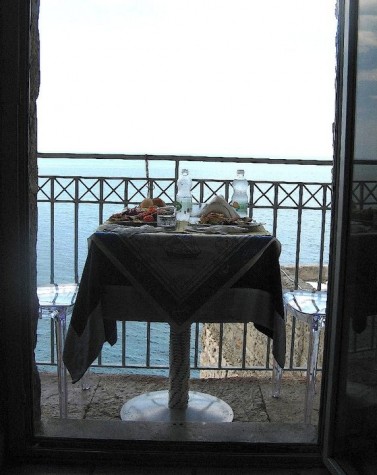 Polignano. Il balconcino salvapensieri del Bar dei Serafini