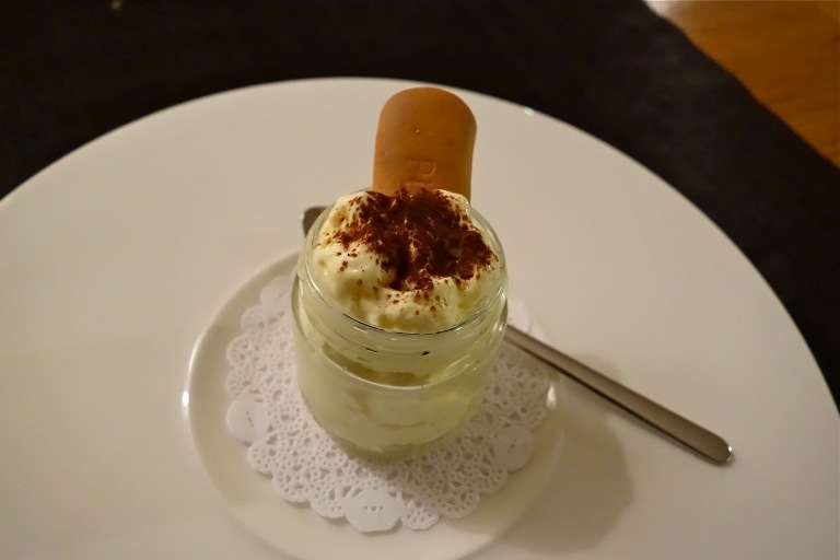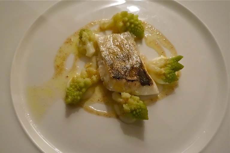Luccio Perca, crema di mozzarella di bufala campana DOP, broccolo romano e olio alle acciughe: un grande classico del lago maggiore, a pochi metri dal MoMa, con tuttavia influenze culinarie da tutta italia. Eʼ nteressante, ma manca ancora qualcosa e risulta un poʼ debole. Da affinare.