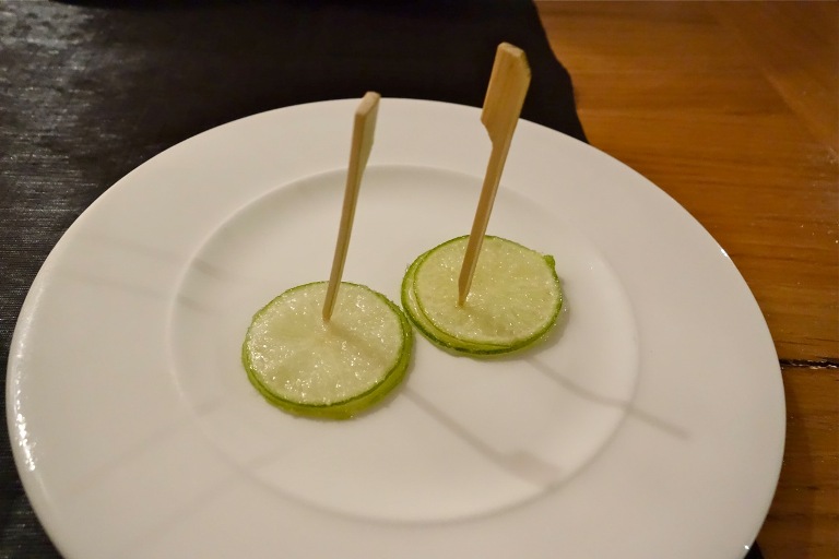 Sorbetto MoMa, ovvero lime, zucchero e sciroppo di menta: pulisce la bocca in modo sfizioso, gradevole.