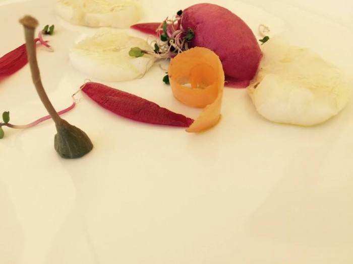 Molto buono anche l’abbinamento orto mare del tonno in bilico tra la crema dolce e l’amaro della cicoria. Non voglio neanche parlare del sapore di questo pesce pescato al largo: incredibile.