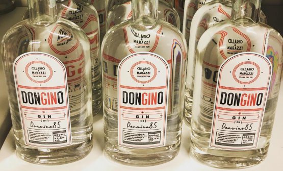 Per il Don Gino, Vincenzo ha scelto del grano tenero italiano biologico e poi ginepro, coriandolo, angelica, cardamomo, calamo, liquirizia, cannella, cassia, camomilla, radice di iris, pepe del Bengala, pepe di Szechuan, pepe di Timut, Pepe rosa, galanga, foglie di lime Kaffir fresche, rosmarino, scorze di limone fresche, arancia di Ribera, origano, carruba e nepitella.