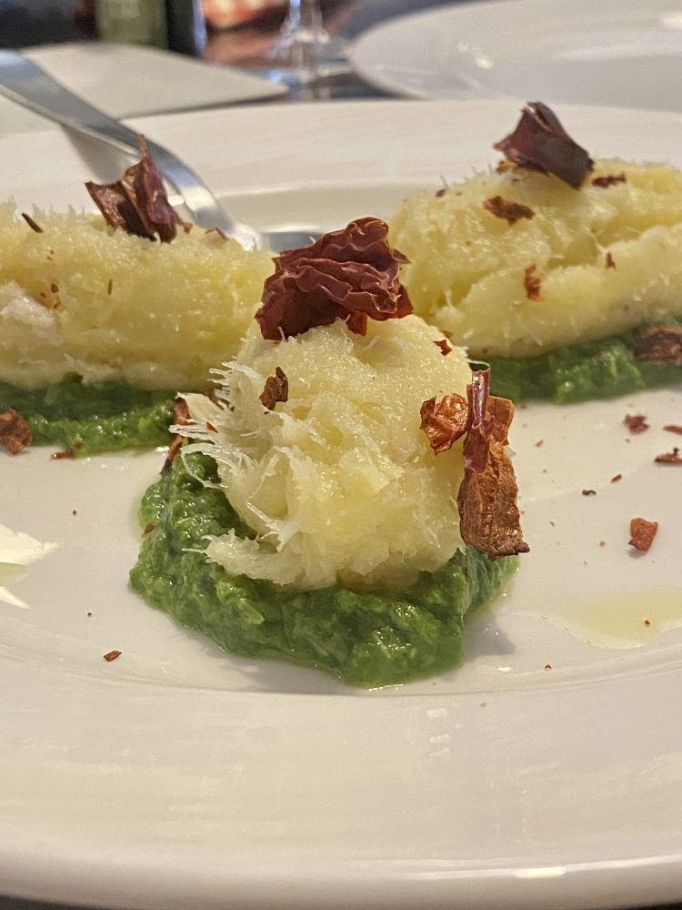 Il Kruscotto, baccalà irlandese mantecato con patate e pomodori cruschi; la Frittata di cipolle di Alife e pomodoro San Marzano (tornerei anche solo per questa), eseguita al momento.