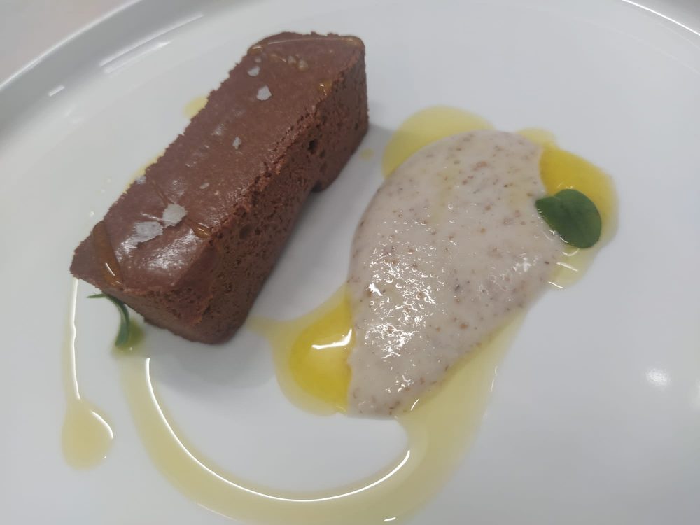 La dolce chiusura racconta un pane e miele impreziosito da sale, olio e cioccolato.