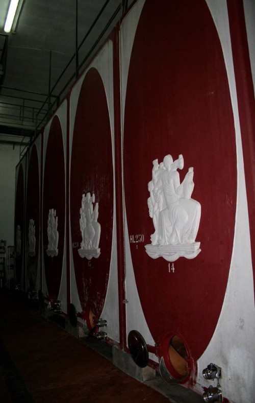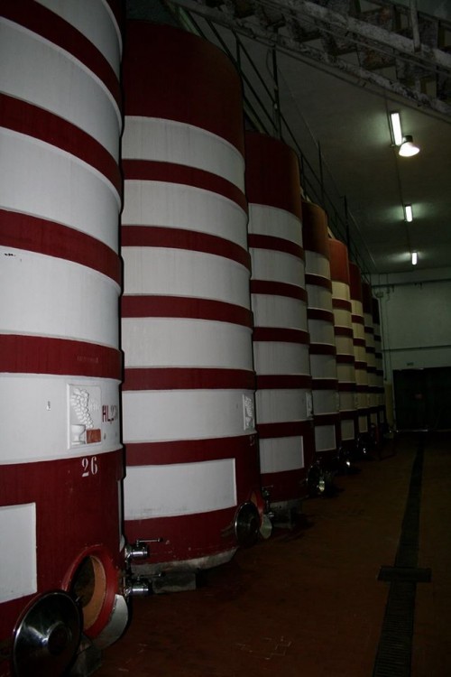 Il nuovo corpo a vista della cantina comprende, il punto vendita, sala accoglienza e uffici, ma è nel vedere l’enorme cantina tutta interrata che mi sorprende con enormi cisterne in cemento tutte allineate e in perfette condizioni.