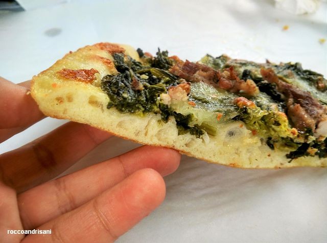 La salsiccia e friarielli è fatta a regola d’arte. I friarielli, terrosi e amarognoli, sono sfritti al punto giusto e con la giusta quantità di peperoncino e sono protagonisti.