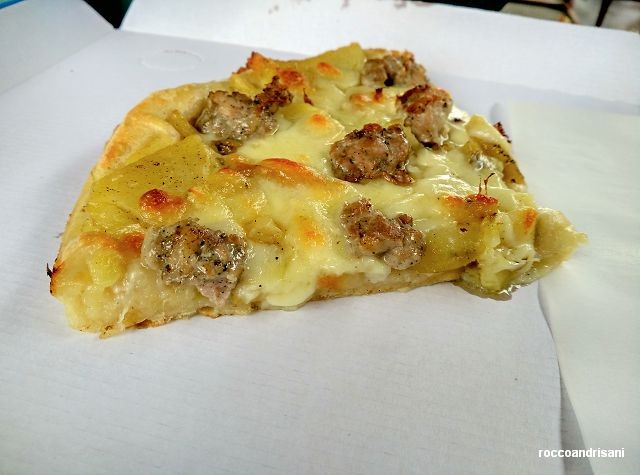 La salsiccia e patate non scherza, con la salsiccia “a punta di coltello” di ottima qualità e pepata al punto giusto, che in cottura rilascia tutti i suoi umori insaporendo in maniera indimenticabile le patate.