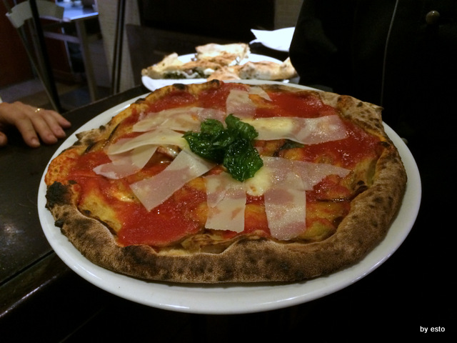 Qui il concetto di parmiggiana, con due “g” alla napoletana, è applicato alla pizza.