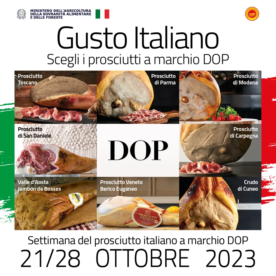 Tornano “Le settimane del Prosciutto italiano a marchio DOP” che dopo l’appuntamento dello scorso mese di settembre saranno protagoniste della sette giorni dal 21 al 28 ottobre. Un’iniziativa di campagna di comunicazione e informazione presso i consumatori da parte del Ministero dell’Agricoltura, della Sovranità alimentare e delle Foreste per la valorizzazione della filiera suinicola italiana, con due momenti specifici dedicati agli otto prosciutti italiani a marchio DOP. Si tratta del “Prosciutto Crudo di Cuneo DOP”, “Jambon De Bosses D.O.P.”, “Consorzio del Prosciutto di Modena”, “Prosciutto di Parma”, “Consorzio Del Prosciutto Toscano”, “Consorzio Prosciutto Veneto DOP”, “Prosciutto di San Daniele”. All’interno delle attività il Ministero ha voluto dedicare anche una specifica sezione nel proprio sito web istituzionale a “Il prosciutto nell’alimentazione”, specificando che “i salumi sono inseriti nel gruppo degli alimenti ‘voluttuari’, ossia quegli alimenti che possiamo consumare per il piacere di farlo, ma che non sono indispensabili per coprire i nostri fabbisogni.