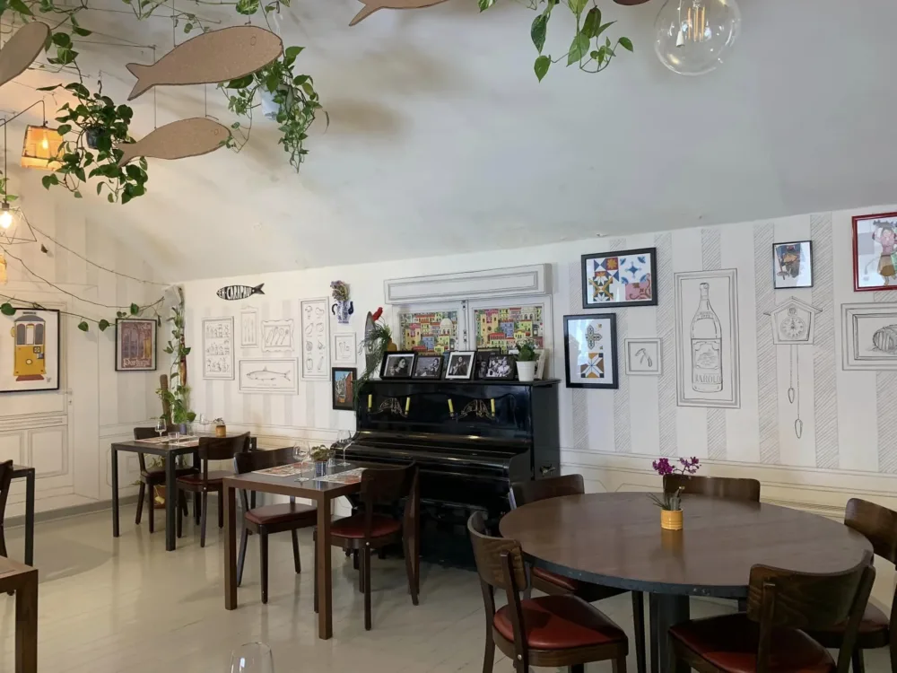 Al Boteco si entra da un vicoletto laterale al Palazzo e si viene catturati da un ambiente molto curato, semplice e colorato e dai tanti richiami portoghesi, a partire dalle sardine presenti un po’ ovunque. La cura è in tanti dettagli: i quadri alle pareti, i fiori freschi, il pianoforte in sala, il legno lucido dei tavoli, le tovagliette di carta dai disegni fantasiosi.
