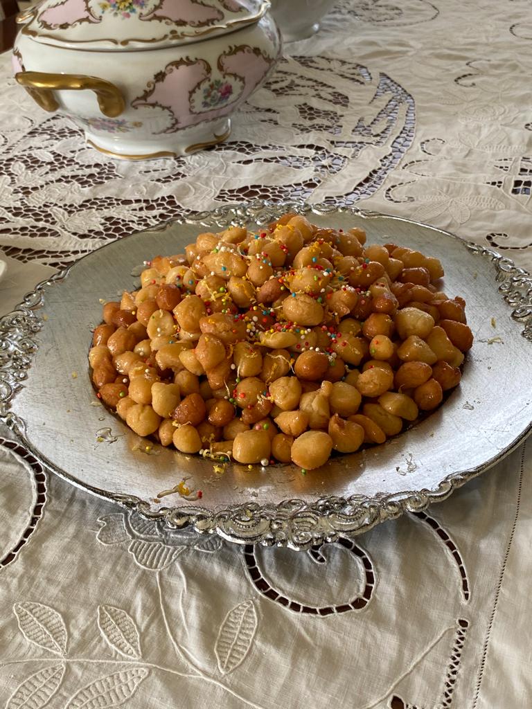 Questo passaggio è importante per evitare che il miele coli sul fondo, lasciando gli struffoli sconditi.