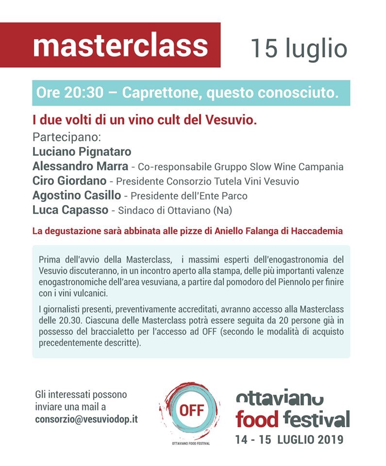 OFF a Ottaviano, le masterclass sui vini vulcanici del 14 e 15 luglio