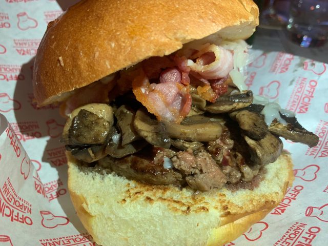 Officina Napoletana – panino con hamburger, bacon e funghi