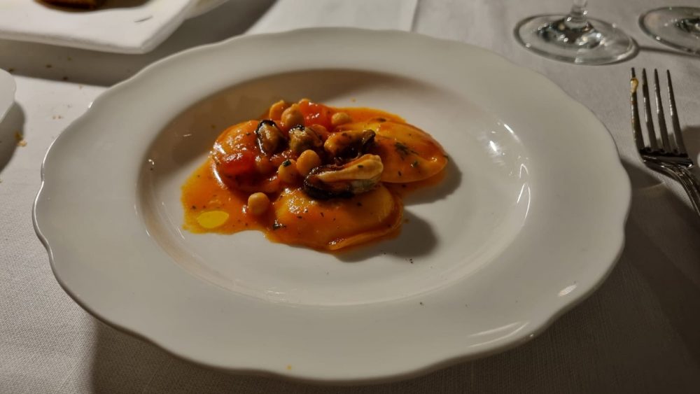Oliva – Bottoni ripieni di burrata con ceci e cozze