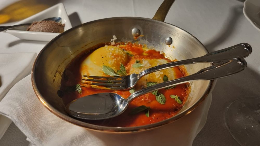 È ottimo e vale quasi l’intera cena, tra l’altro è inserito negli antipasti ma per la porzione abbondante potrebbe essere tranquillamente un secondo. Sempre tra gli antipasti è delizioso ed irresistibile l’Uovo di gallina Livornese alla Picchiapò con pomodoro, grana 24 mesi e mentuccia, nel quale risulta difficile non intingere il pane (io ho ceduto senza pentirmene!).