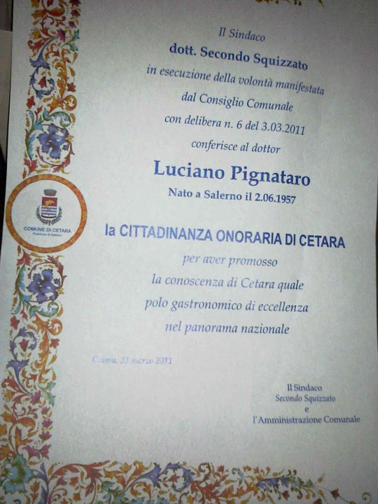 Ora sono Cittadino onorario di Cetara