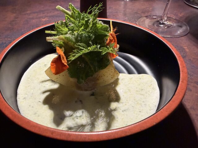 Tornato vicino casa, entra inizialmente come capo partita e poi come sous-chef di Fabio Verrelli D’Amico, presso Materiaprima, ristorante una stella Michelin a Pontinia. Qui Lorenzo definisce fondamentale l’esperienza per approfondire la tipicità e la biodiversità dell’Agro Pontino, conoscenze che oggi rappresentano la spina dorsale della sua cucina. A un certo punto sente di voler tornare a Priverno, scommettere sulle proprie “origini” e costruire qualcosa nella città dove è nato e cresciuto. Nel 2024 apre Origini Trattoria Contemporanea, consapevole delle difficoltà di avvicinare un pubblico legato alla tradizione al mondo del fine dining, dove gli ingredienti locali vengono presentati in chiave contemporanea. Sceglie il locale dei suoi sogni da bambino, nel cuore di Priverno, in uno stretto vicolo poco prima di raggiungere il punto più alto del quartiere medievale, accanto alla Chiesa di San Nicola del XIII-XIV secolo. L’accesso non è dei più comodi, e il parcheggio limitato, ma la visita vale ogni sforzo.
