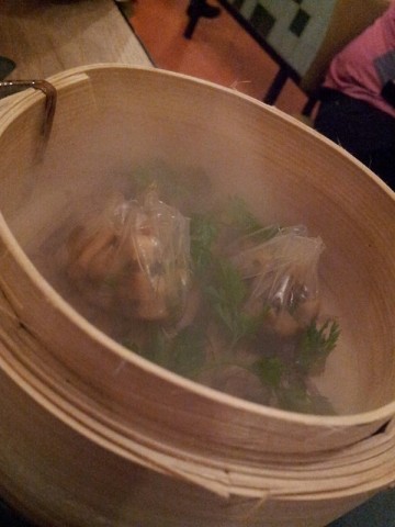 - “Dumpling” de boletus: una scossa olfattiva, violentemente piacevole, seguita dal gran DISFRUTAR dei ravioli, al palato!