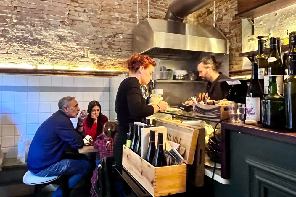 Avevamo lasciato Andrea Madonia a quella non ripetuta, e nostalgicamente adesso mancante in Versilia, esperienza di Fubi’s, ormai chiuso da anni. Prima di quella fulgida esperienza, si formò a L’Andana di Ducasse, per poi approfondire le sue esperienze da Bracali. Dopo lo troviamo gironzolare – in senso formativo- per Lucca, ma poi il destino e la patria chiamarono: diventato padre, torna a San Miniato, la sua città e da un paio di anni dirige – quasi one man band – la piccolissima Osteria Brassica, in una via traversa del centro della città del tartufo.