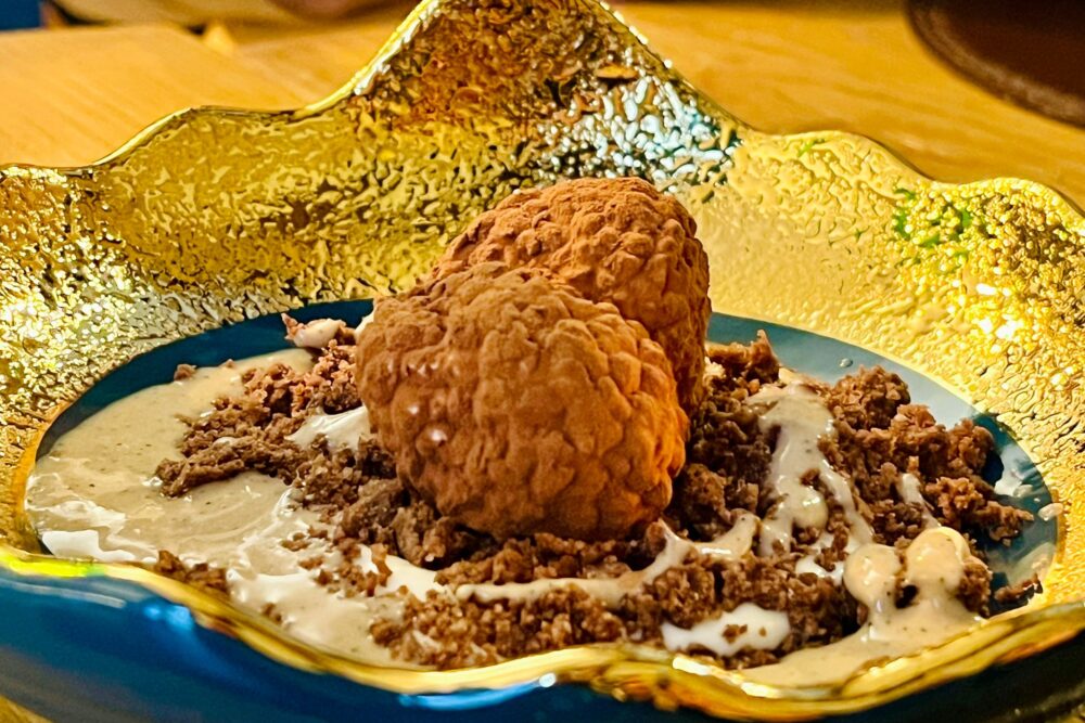 Indimenticabile l’uovo a bassa temperatura, spuma di cavolfiore arrostito, nocciole e crumble alla paprika affumicati. E’, infine , col dolce che – tra alla Brassica si completa un’esperienza assolutamente consigliata: Tiramisù tartufo – bavarese al mascarpone con chantilly al tartufo di San Miniato, con salsa a caffè.