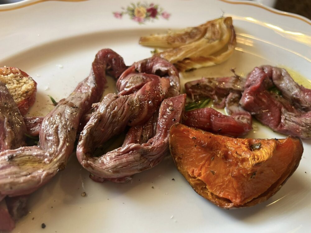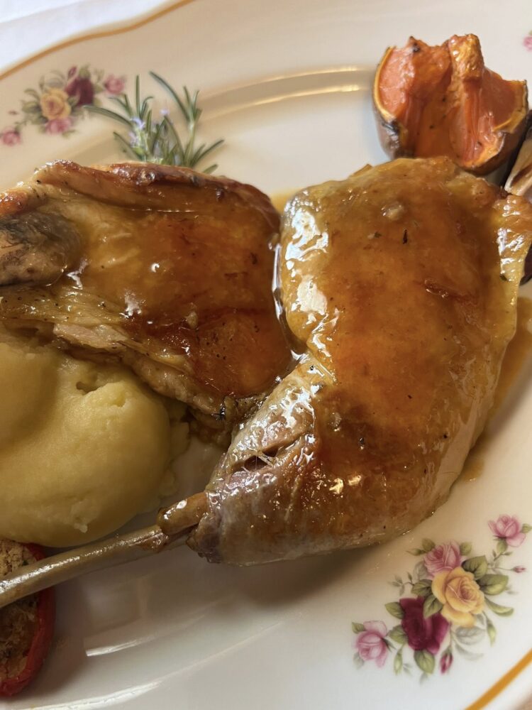 Deliziosa la faraona, anch’essa da sola vale il viaggio. Non mancano i contorni di verdure, un purè di patate rustico, il gelato fatto in casa. Purtroppo andiamo di fretta, ma questo è un luogo da vivere lentamente, godersi il tempo e bevendo a profusione alcuni dei migliori vini italiani. Ovviamente vi potete sbizzarrire con il parmigiano reggiano, il burro aziendale, mortadella e prosciutto crudo da sballo prima di cominciare.