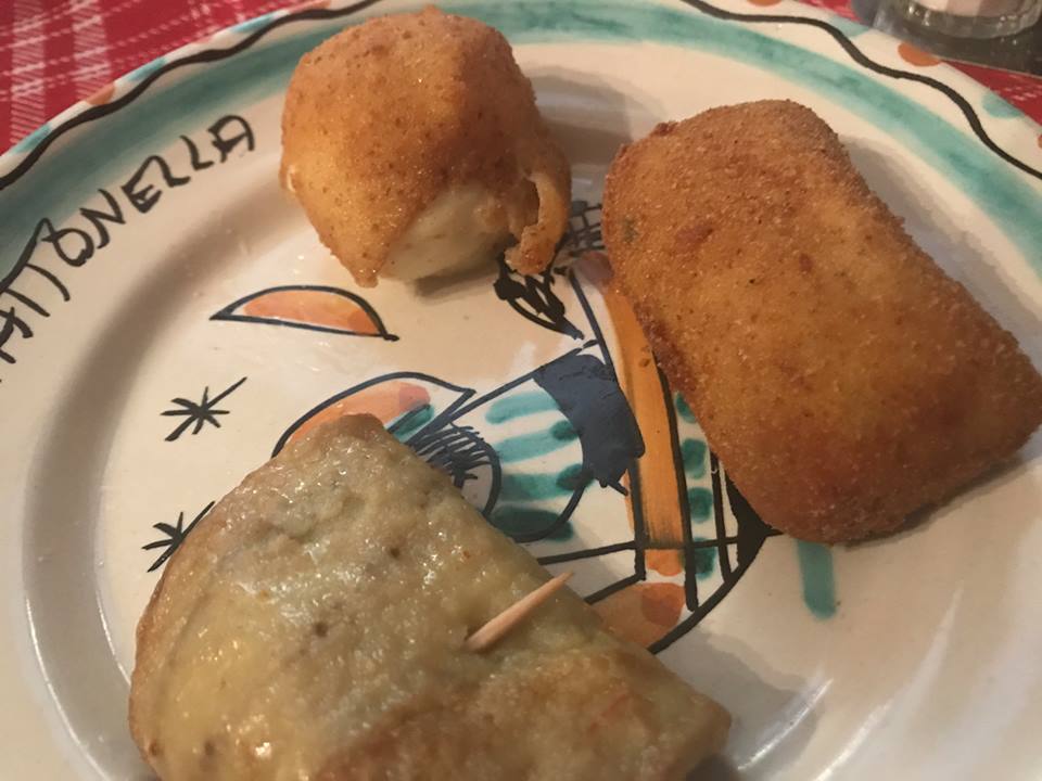 La Mattonella Napoli, il crocche’, l’involtino di melanzana e la mozzarella, il tris di fritti