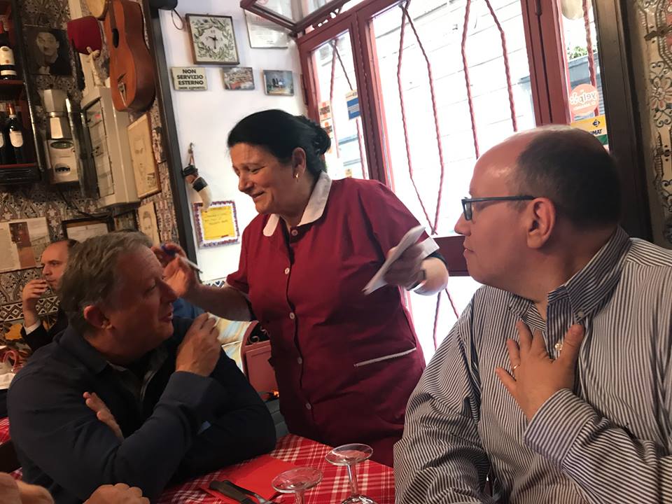 La Mattonella Napoli. Antonietta tra il medico del Napoli Alfonso De Nicola e Francesco De Luca, responsabile Sport de Il Mattino