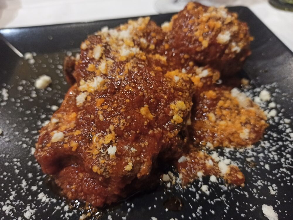 E’ dunque la volta del tiratissimo Ragù Napoletano “al piatto” (8 euro) con la Polpetta, la Braciola e la Tracchia. Un “piatto” che, manco a dirlo, ritornerà in cucina ben pulito grazie sempre al pane che ben si presta a non lasciare neppure una goccia della densa crema di pomodoro.