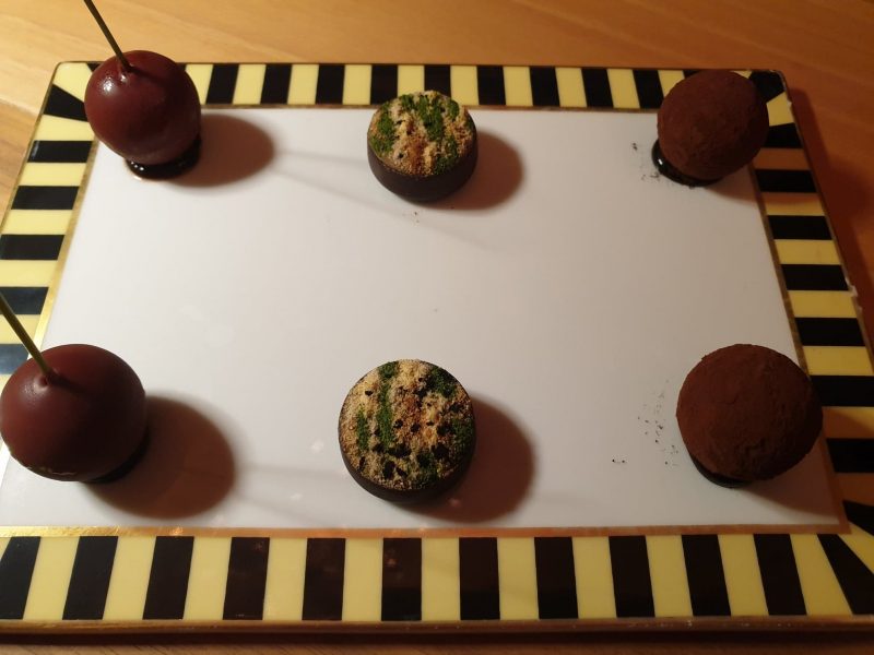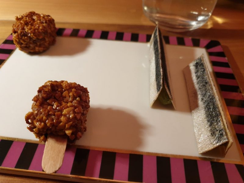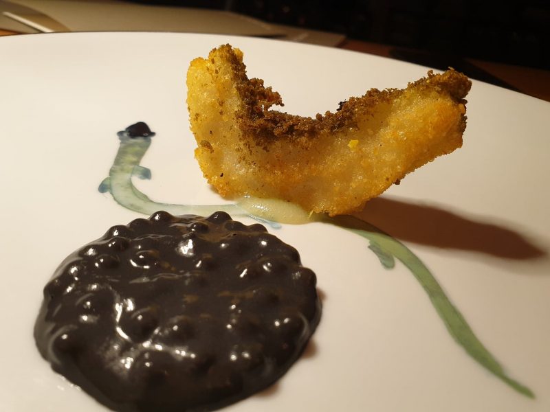 Stiamo ancora decidendo quale pesce servirvi”. Poi hanno deciso: rombo e capesante, crema di finto caviale di uova di trota e nero di seppia. Una salsa che sa di fango, di terra, che mischia l’eleganza dei pesci di mare alla potenza di quelli di acqua dolce. Equilibrismi meravigliosi.