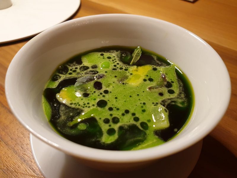 La pasta e piselli in astratto. L’avanguardia è un terreno veramente difficile per tutti e quando si vuol fare avanguardia, per me, il riferimento mondiale assoluto è in questo ristorante, perché oltre alla provocazione, al gesto tecnico, all’estetica, si deve tenere presente sempre che il piatto deve essere anche buono e godibile, come in questo caso. L’intermezzo della Cavalleria Rusticana, la fantastica opera in atto unico di Pietro Mascagni.