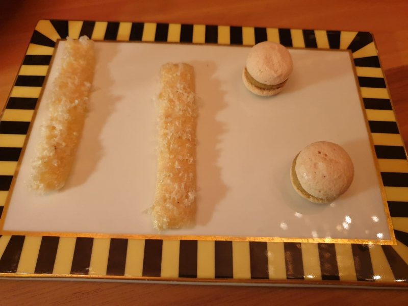 “La faraona di Mirella era un sogno! Ero un ragazzino avevo 8 anni e andai a festeggiare il mio compleanno dai Cantarelli!” Invece questa volta il compleanno era il mio e la faraona era quella di Massimo Bottura. Un vero e proprio viaggio nella faraona, omaggio alla mitica Mirella, (ricordo ancora tutti gli articoli di Stefano Bonilli, sulla magia di Sanboseto). Prima il raviolo cinese ripieno di patate arrosto tra “bisque” di faraona e croccante al parmigiano, poi la faraona ripiena di bollito non bollito, ed infine il paté di fegatini e cioccolato, savor di mela cotogna e tartufo nero. Nel menù che ricalca lo spirito della tradizione operistica, questo è il gran finale, quello in crescendo, che ti lascia il sapore per giorni e continua a girarti in testa. Piatto dell’anno fino a questo momento. Il finale della Turandot, la grande incompiuta di quel genio di Giacomo Puccini, completata poi da Franco Alfano, mi sembra l’abbinamento perfetto.