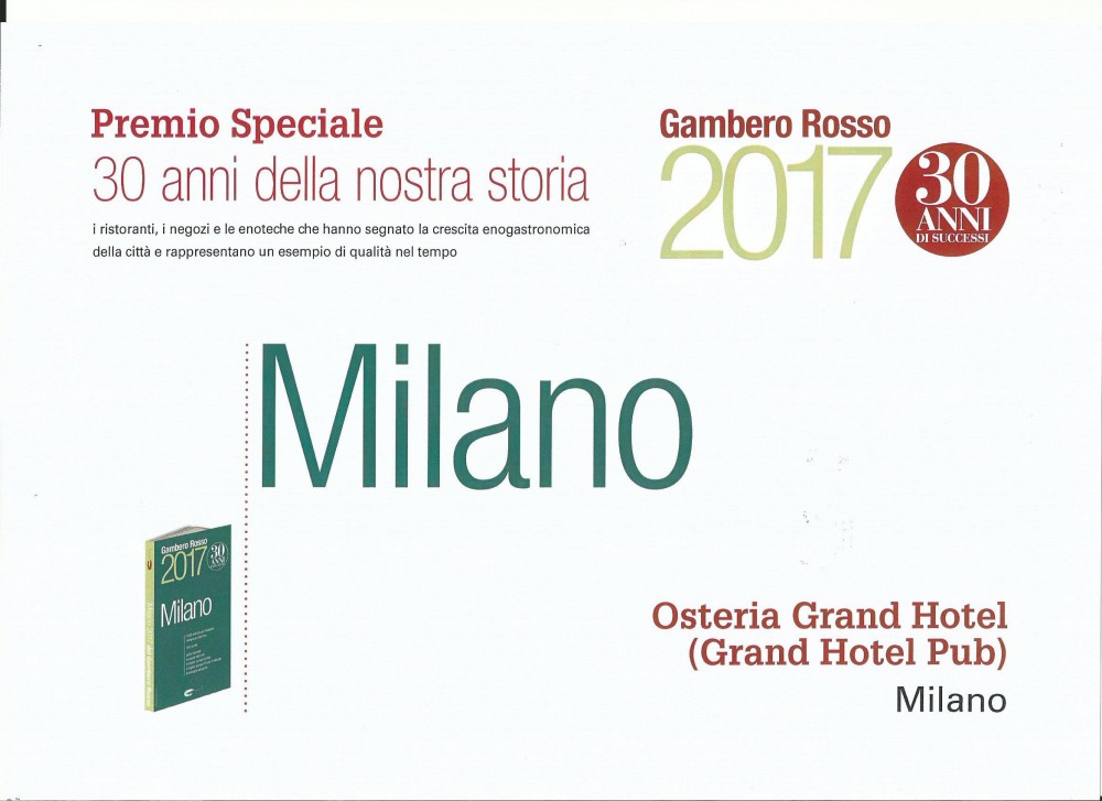 Osteria Grand Hotel, meritato riconoscimento del Gambero Rosso