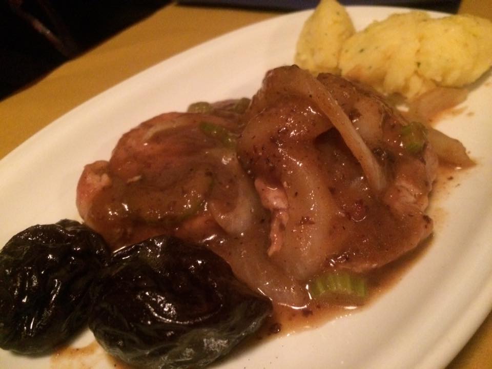 Ben eseguito il classico fegato di vitello alla veneziana, tenero e umido il giusto, con cipolle dolcissime e scioglievoli. Costolette di agnello succulente, profumate al timo e un gradevole maiale alle prugne.