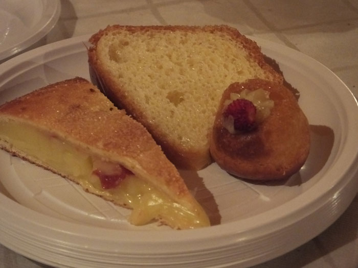 Poi è stata la volta della Tiana di Castelpoto e le polpette napoletane al sugo, quelle con l’uva passa e i pinoli. Il pane quello casereccio dell’agro aversano profumato di grano e forno.