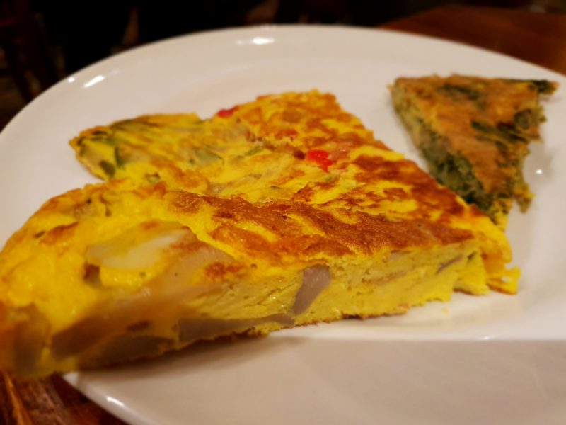 Si entra prima in bottega, dove è possibile acquistare le eccellenze del territorio e dove ti accolgono con un calice di vino e qualche spicchio di piadina con prosciutto, che lasciano piacevolmente intuire quanto seguirà. Per raggiungere il tavolo, si attraversa uno spazio destinato alle preparazioni a vista: signore sorridenti, con cuffiette e grembiuli bianchi, affettano salumi e formaggi e preparano al momento le piadine, prodotte con farina di grano bio della Valmarecchia. Chiacchierano tra di loro, senza fretta, strizzando l’occhio mentre le osservi. E sorridi, perché ti torna alla mente il calore di casa.